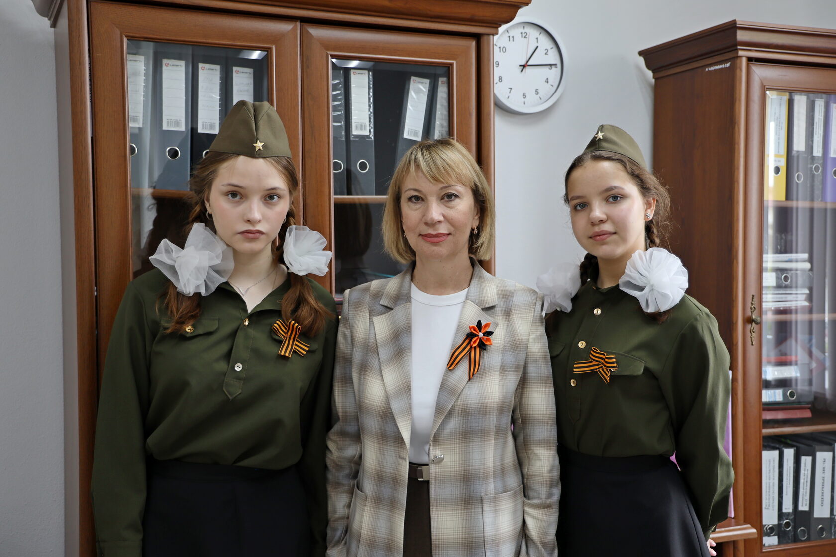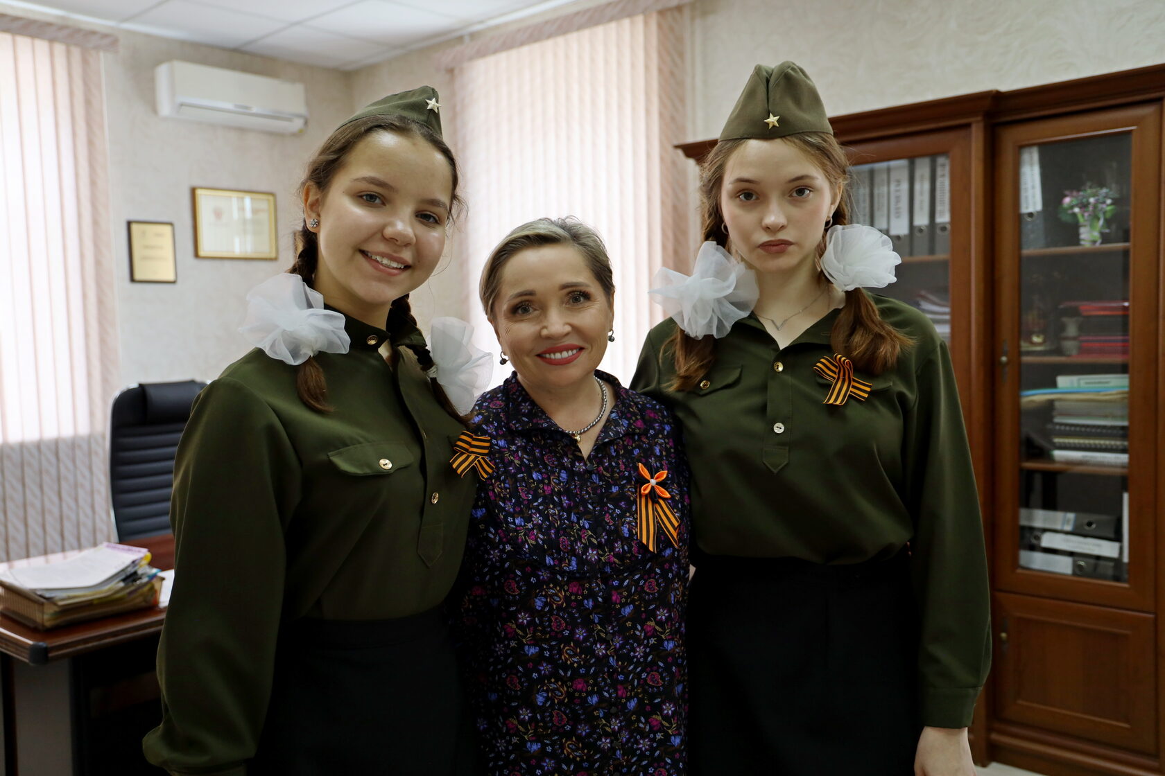 Ребята, переполненные эмоциями и гордостью за отвагу наших защитников Отечества в годы войны, дарили этот символ воинской славы педагогам и сотрудникам Центра.