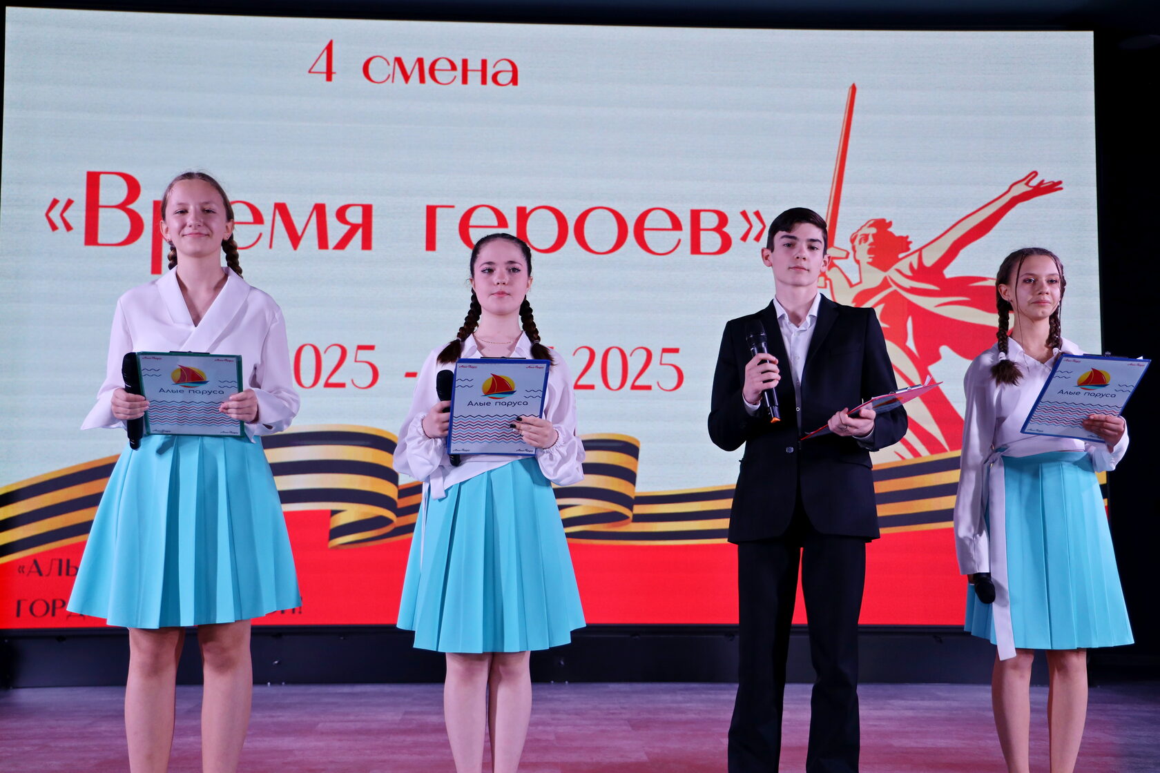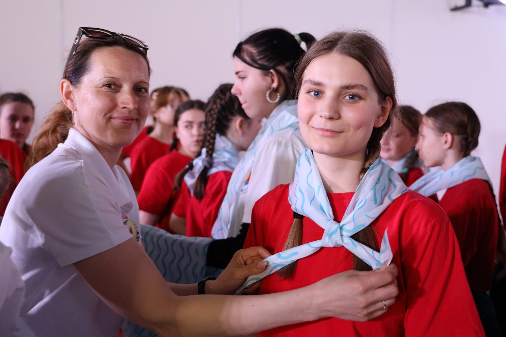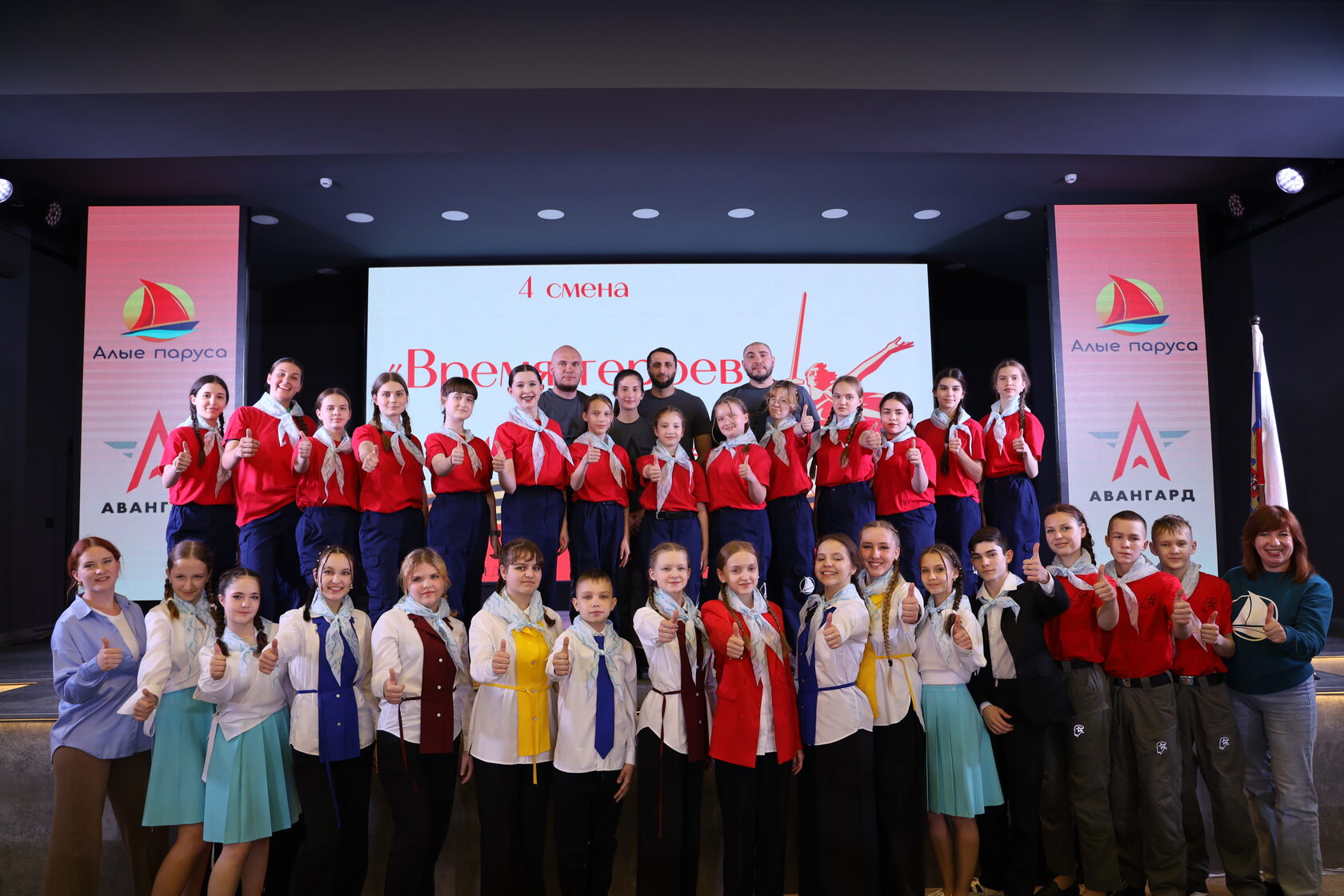 Сегодня в «Алых парусах» состоялось торжественное открытие 4 смены, где по сложившейся доброй традиции, повязывая фирменные галстуки, ребят приняли в члены флотилии «Алые паруса».