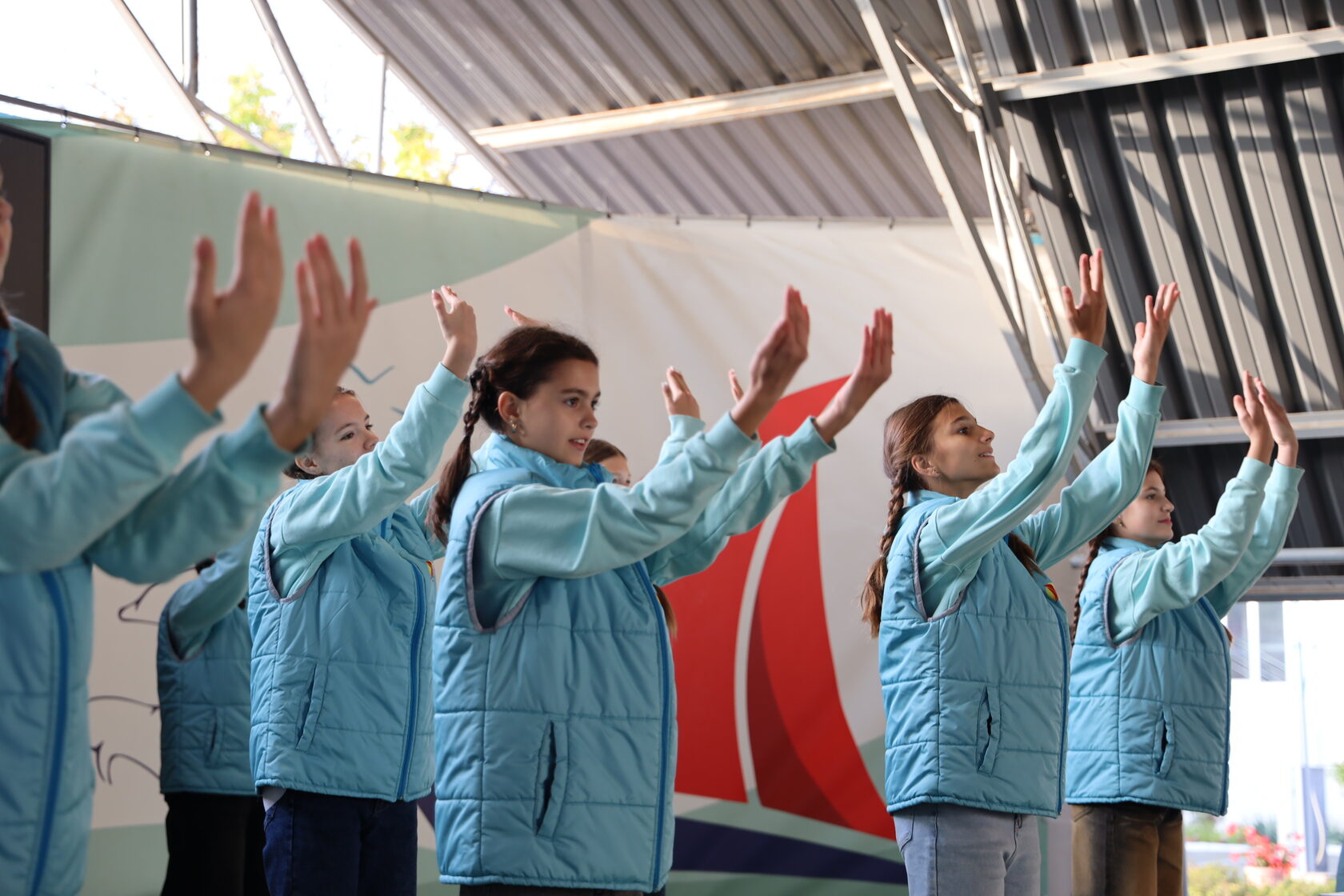 Кроме того, подростки разучили и станцевали фирменный флешмоб «Алых парусов», что сразу зажгло публику. Не подпевать весёлой музыке было невозможно.
