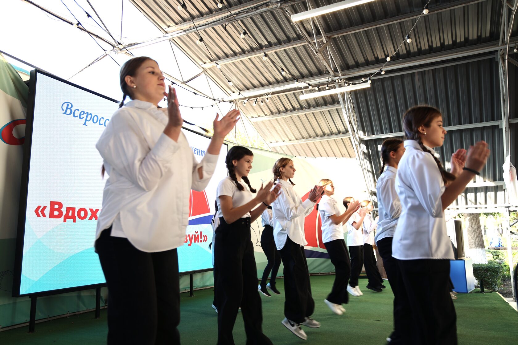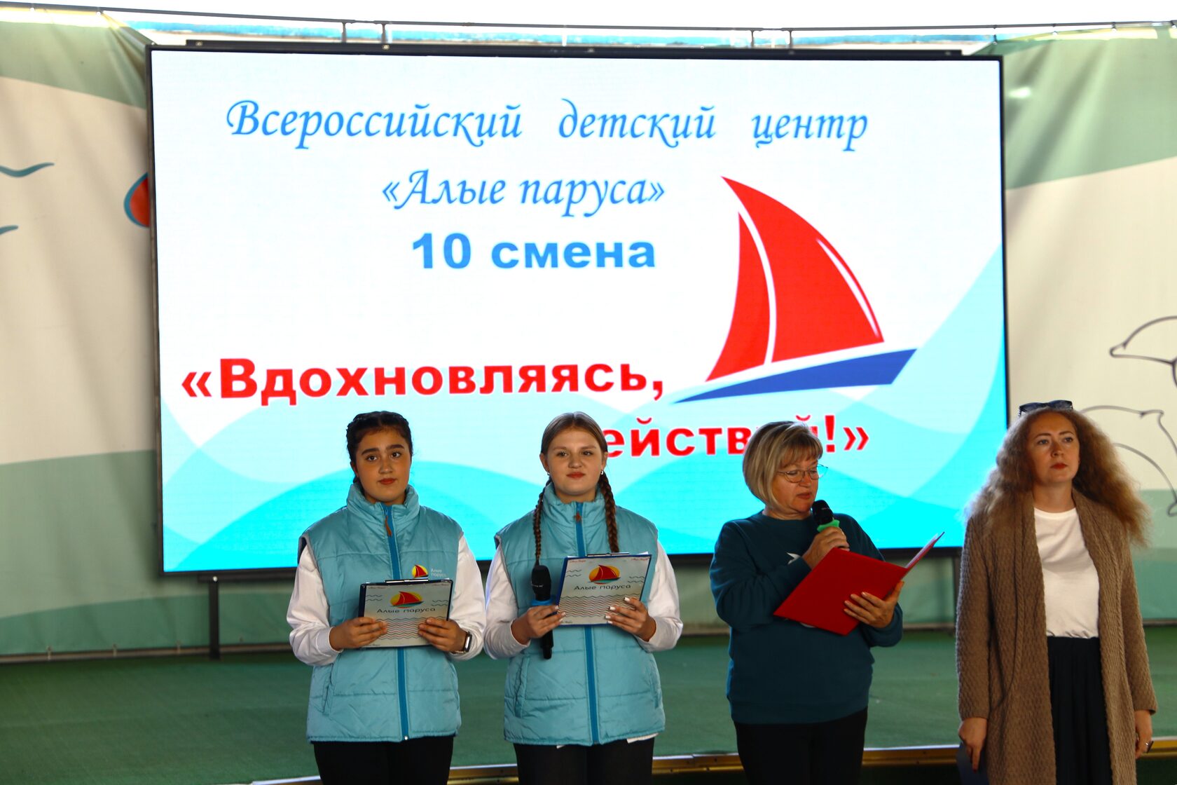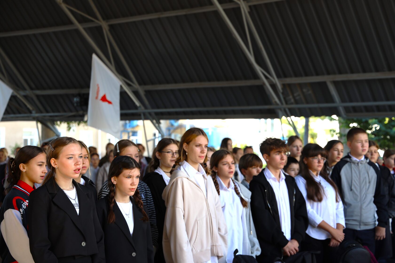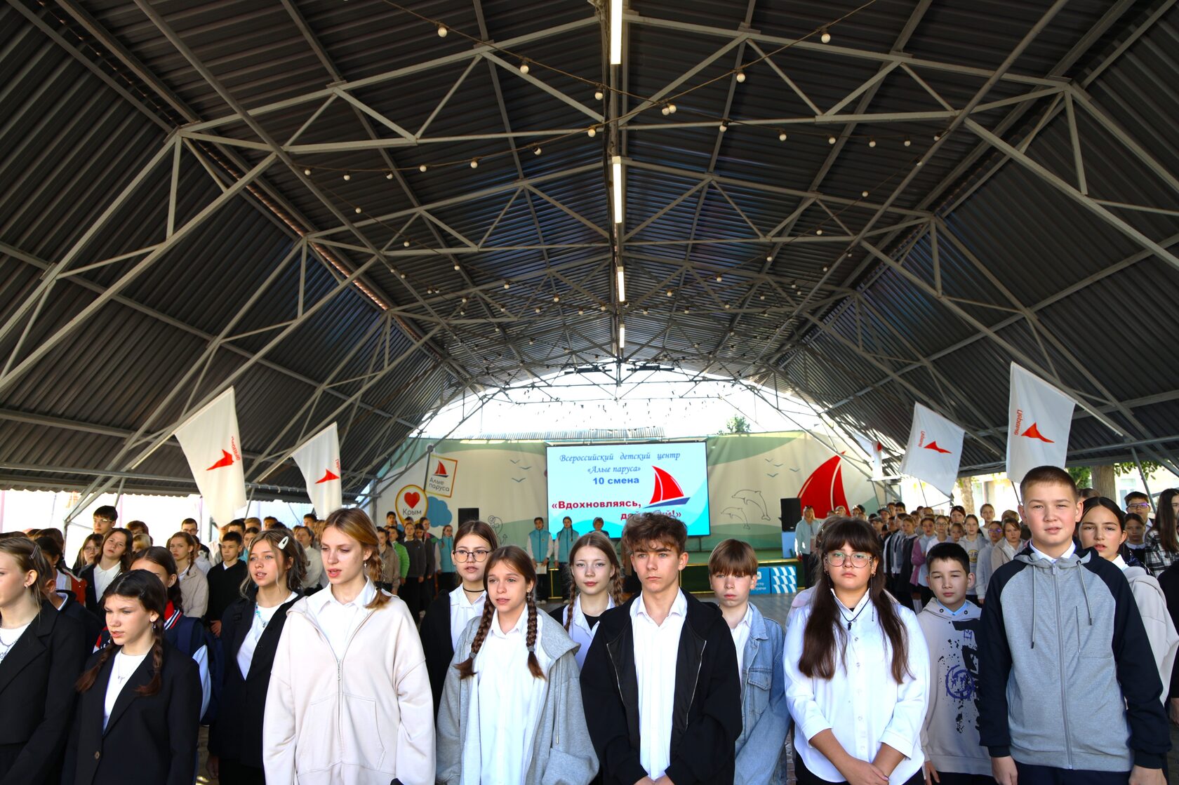 На линейке состоялась церемония поднятия флагов под гимны Российской Федерации, Республики Крым и ВДЦ «Алые паруса», что придало мероприятию торжественности. Подростки также выслушали интересные факты о новом гимне Крыма.