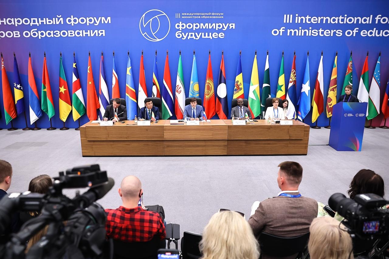 Приветствовал участников третьего Международного форума министров образования Президент России Владимир Путин: «Мы с вами объединены общим устремлением – обеспечить доступность и современный достойный уровень образования. Это ключевое, фундаментальное условие социальной справедливости, сокращения бедности и неравенства, роста доходов, качества жизни граждан наших стран».