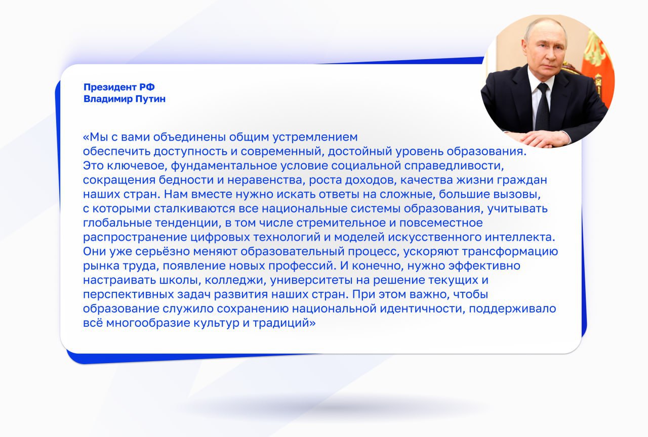 Сергей Кравцов: Предлагаю создать международную рабочую группу по разработке единой модели оценки качества общего образования.Миссия Стратегии развития образования — обучать и воспитывать профессионалов своей страны, которые сохраняют традиции и формируют будущее.