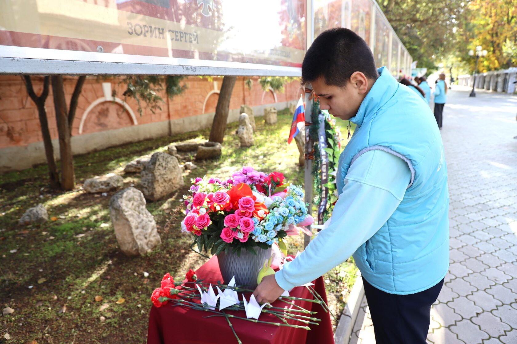 Сегодня, в День белых журавлей, обучающиеся ВДЦ «Алые паруса» возложили на аллее героев цветы и бумажных журавликов-оригами. Так ребята отдали дань памяти всем бойцам, когда-либо не вернувшимся из боя.