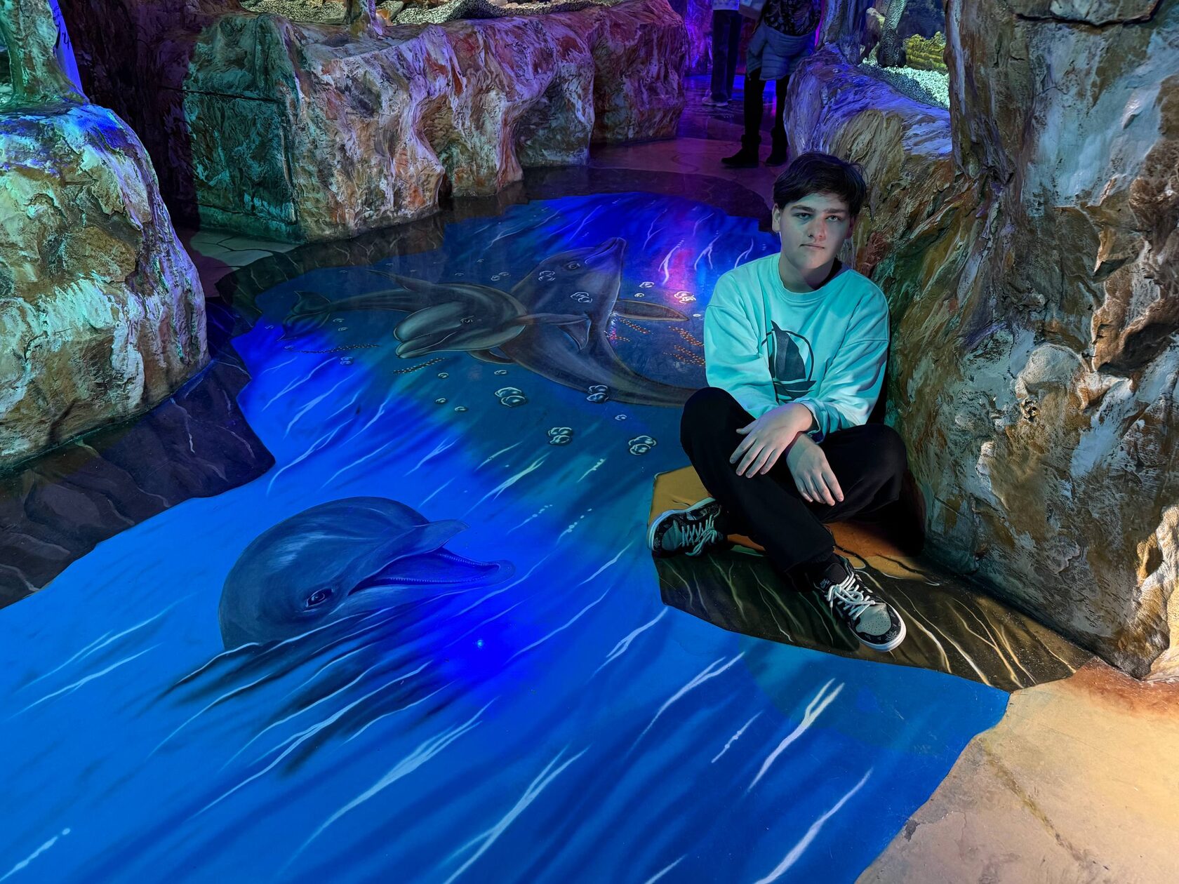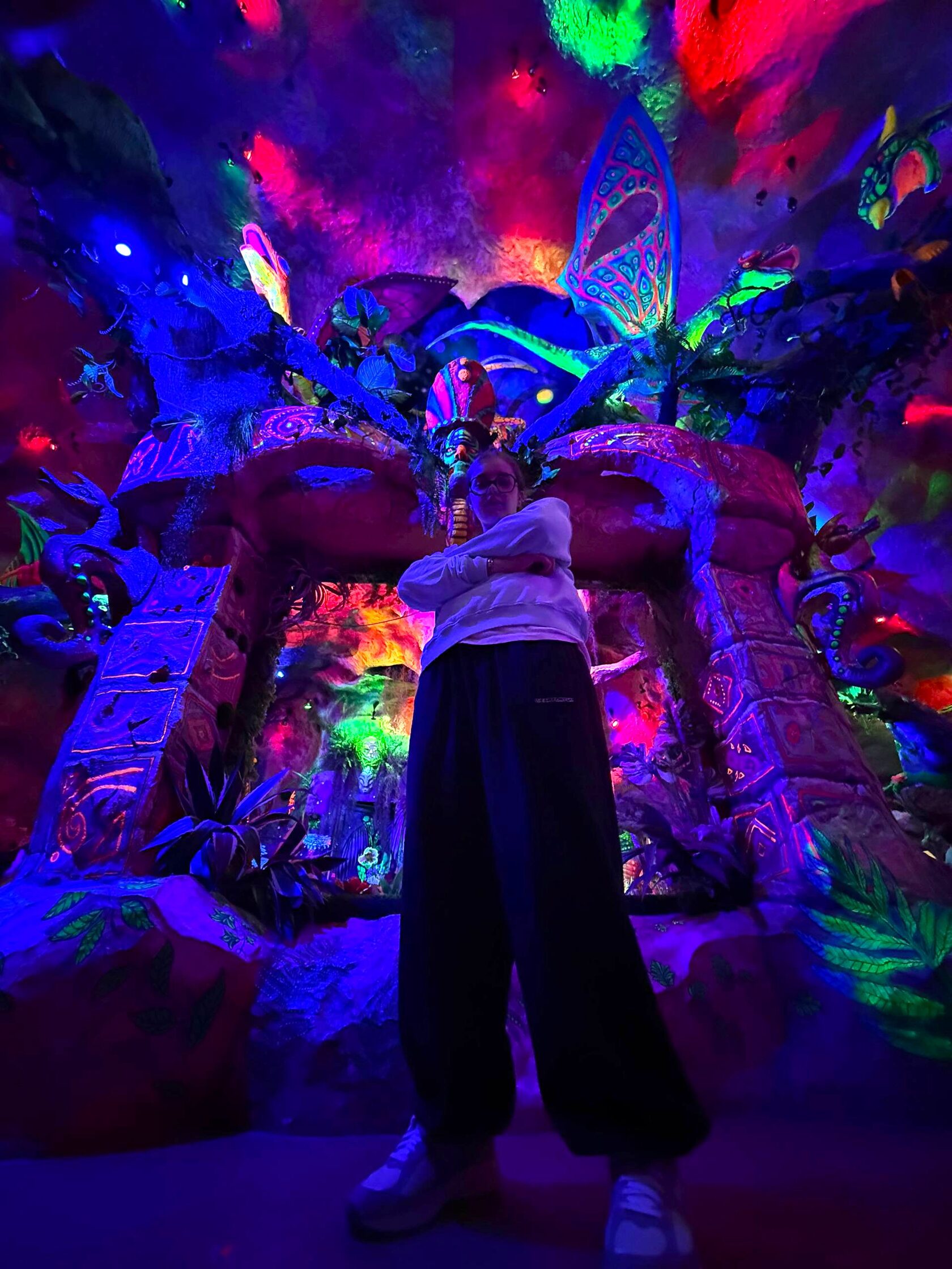 Стены здесь украшены флуоресцентными рисунками диковинных растений и персонажей фантастических кинофильмов, а на полу располагаются 3д-картины, с которыми очень весело делать памятные фото.