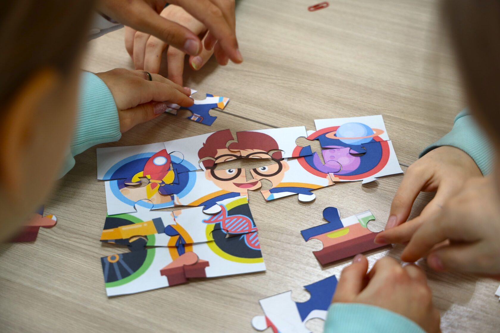 Сегодня для обучающихся Центра прошёл интерактивный урок, посвящённый логическим играм. Ребят ожидали 9 блоков заданий, в рамках которых подростки: решали ребусы, проходили лабиринты, сравнивали картинки, составляли имена из спичек, собирали пазлы и решали массу других задач.