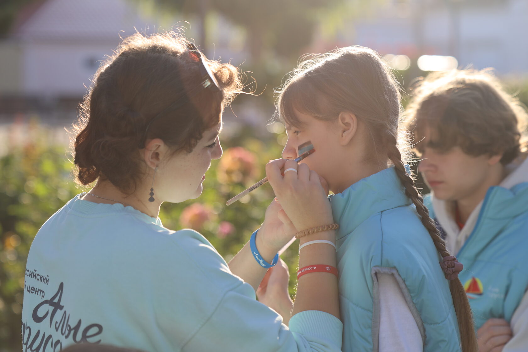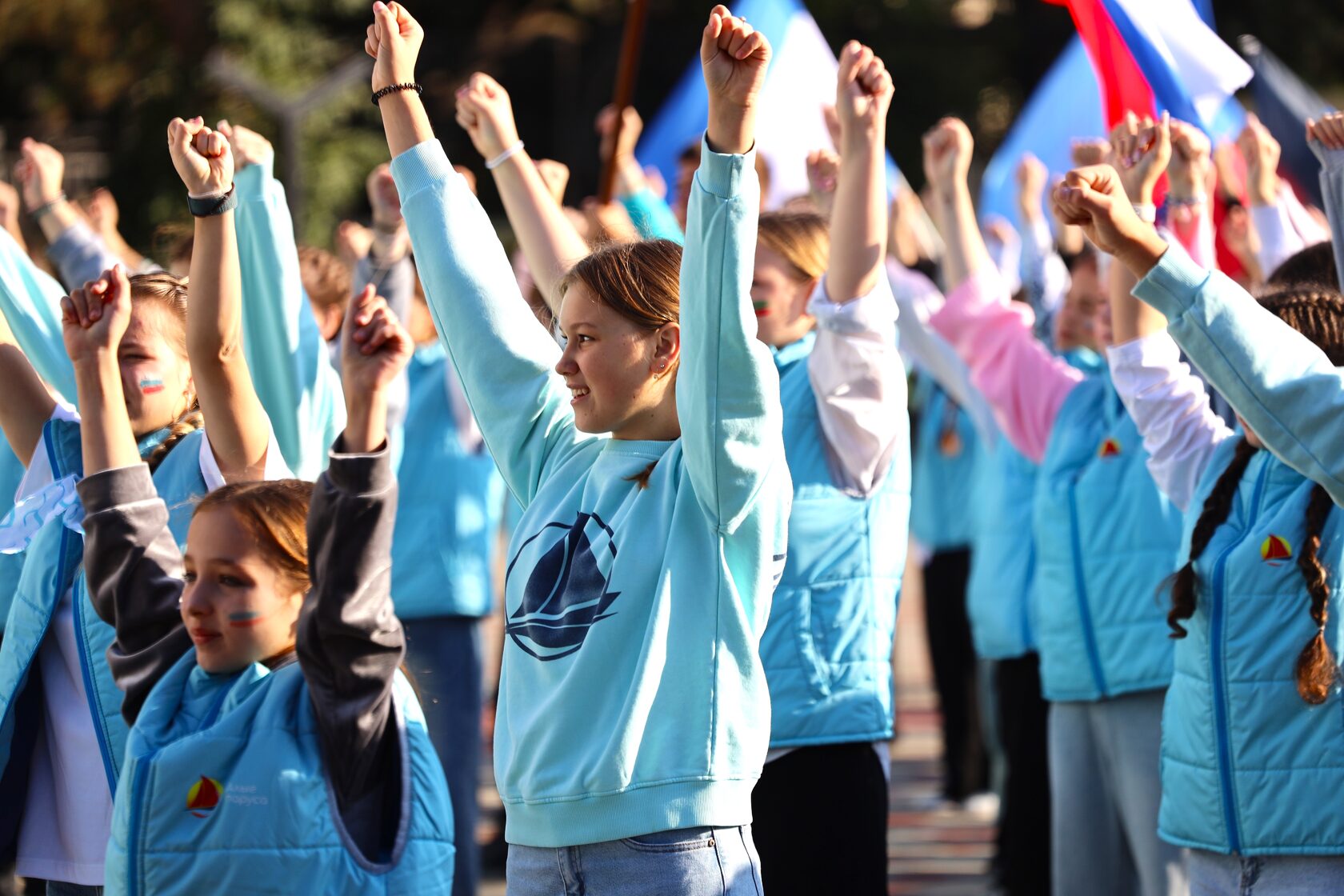 С самого утра в «Алых парусах» звучат песни, повсюду развиваются флаги, на лицах - улыбки и слышен звонкий смех, потому как сегодня мы отмечаем праздник - День воссоединения Донецкой Народной Республики, Луганской Народной Республики, Запорожской области и Херсонской области с Российской Федерацией. Участники смены готовились к радостному событию – рисовали флаги на лицах, пели патриотические песни, поздравляли друг друга с поистине значимым событием для всей страны.