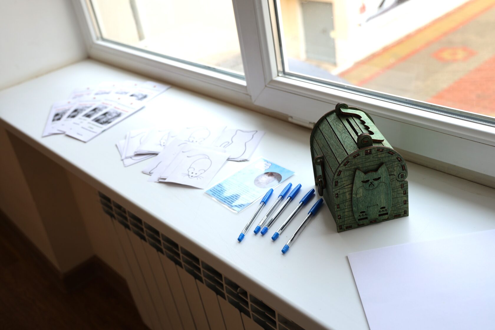 В перерывах между уроками школьников ожидала другая активность – теперь направленная на вымещение негативных эмоций экологичным путем. Детей ждали напечатанные «кошки» и «мышки», на которых подростки могли написать все то, что их беспокоит и закрыть таких «питомцев» в специальном сундучке, где эти мысли и останутся.