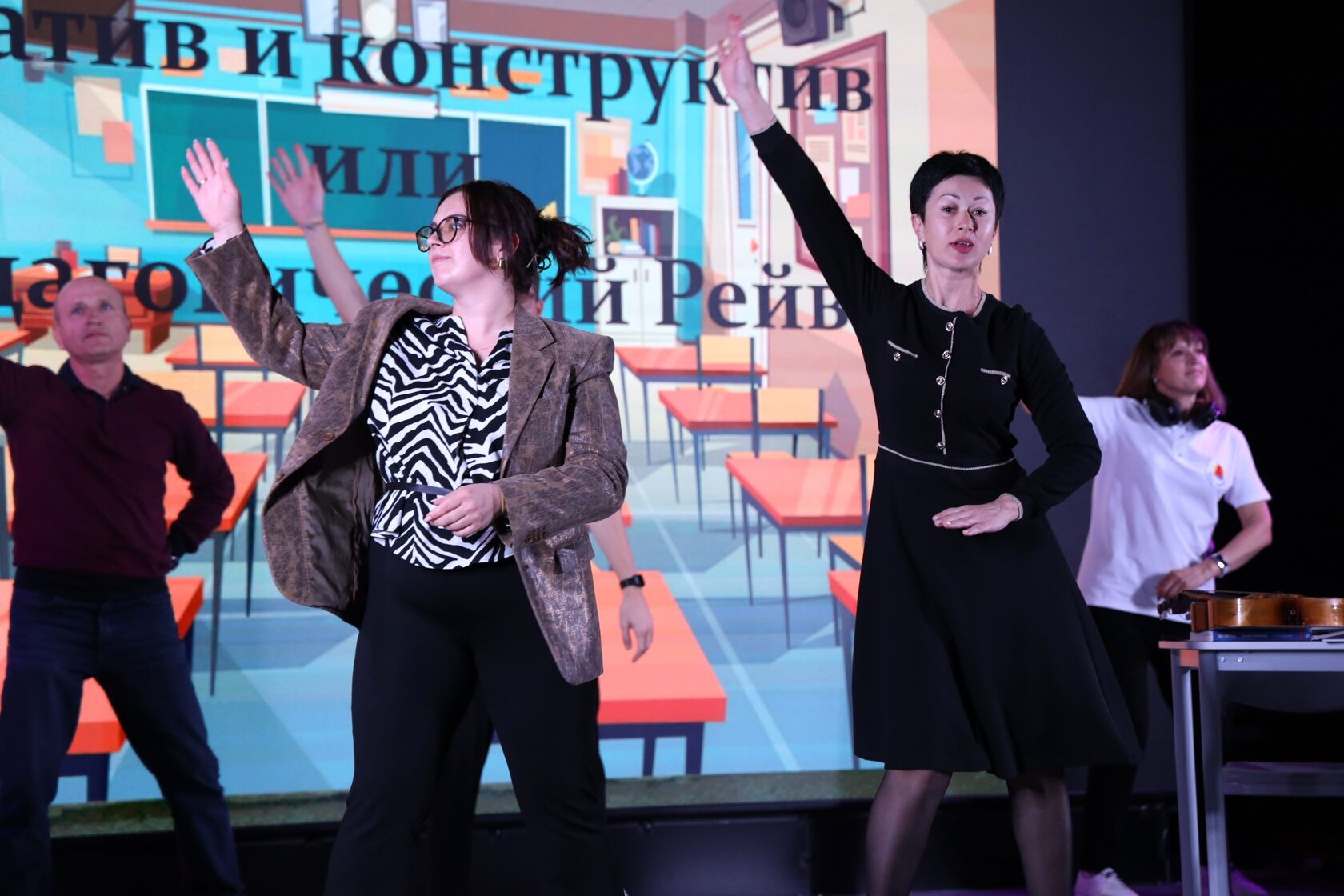 На сцену вышли представители разных педагогических профессий: