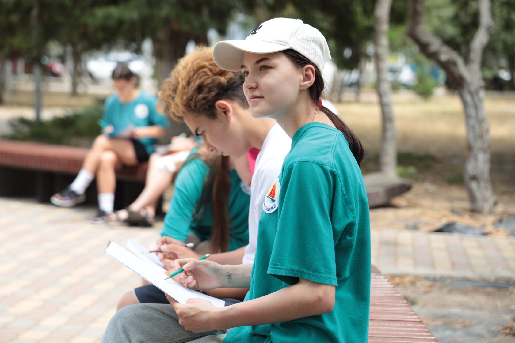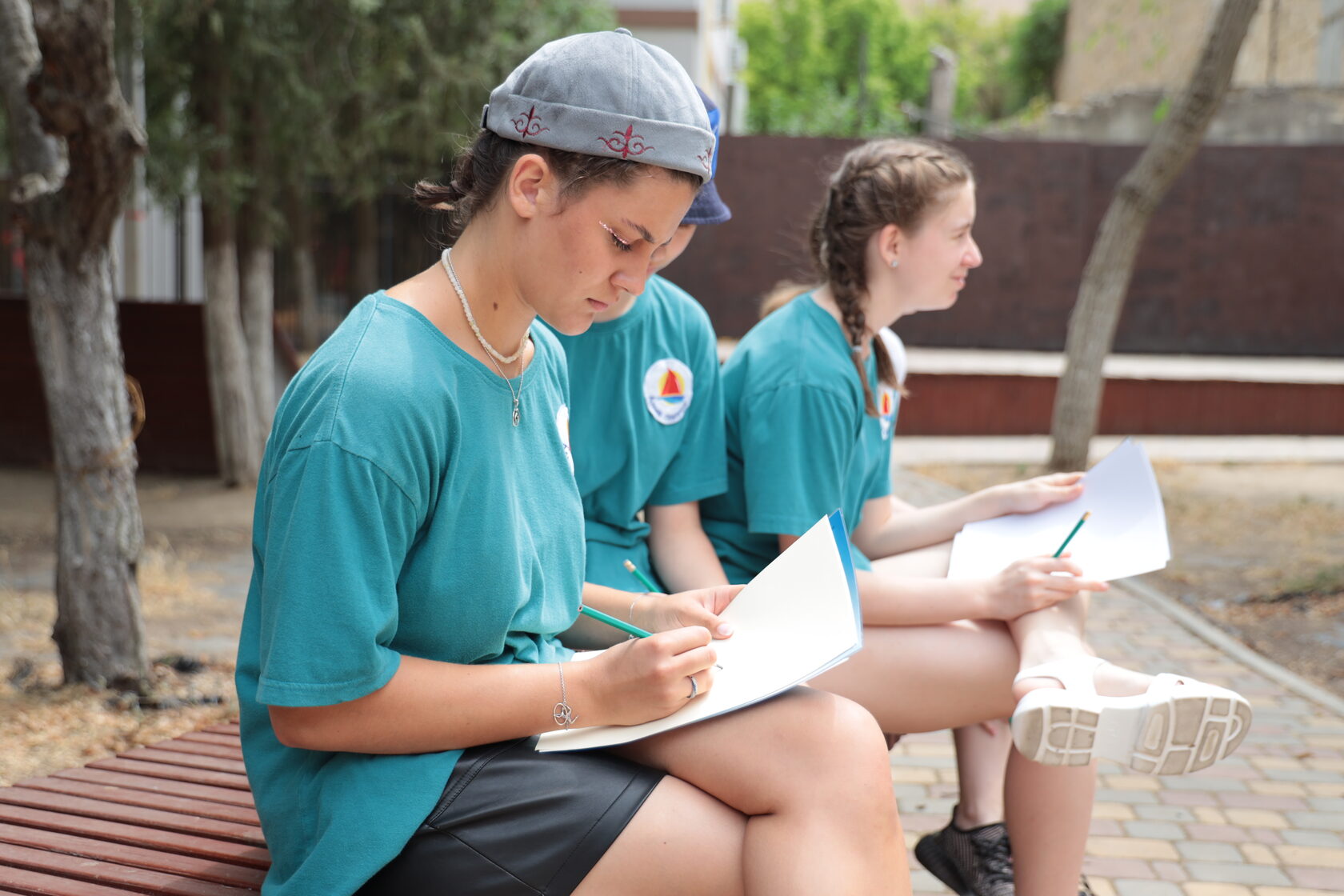В рамках фестиваля "Великая Победа! Великое будущее!" участники смены вышли на пленэр в сквер имени Кирова, расположенный в уютной приморской части Евпатории.