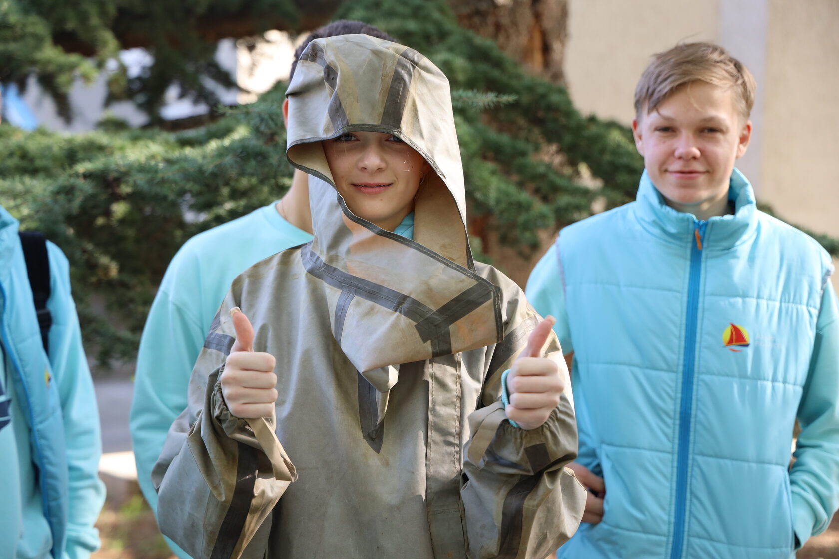 *На следующей локации участники квеста оттачивали свои навыки в ориентировании по компасу, а также разбирались, как пользоваться средствами химзащиты.