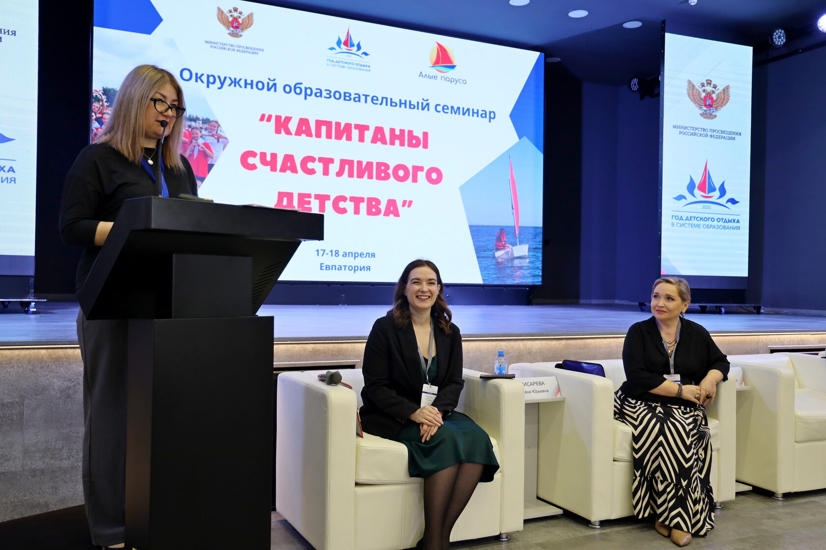 Стартом семинара стала пленарная встреча с руководителем Центра содействия развитию сферы отдыха и оздоровления детей Еленой Писаревой, директором ФГБОУ «ВДЦ «Алые паруса» Еленой Саенко и начальником управления организации воспитательной работы, отдыха и оздоровления детей Министерства образования, науки и молодежи Республики Крым Любовью Полтавец.