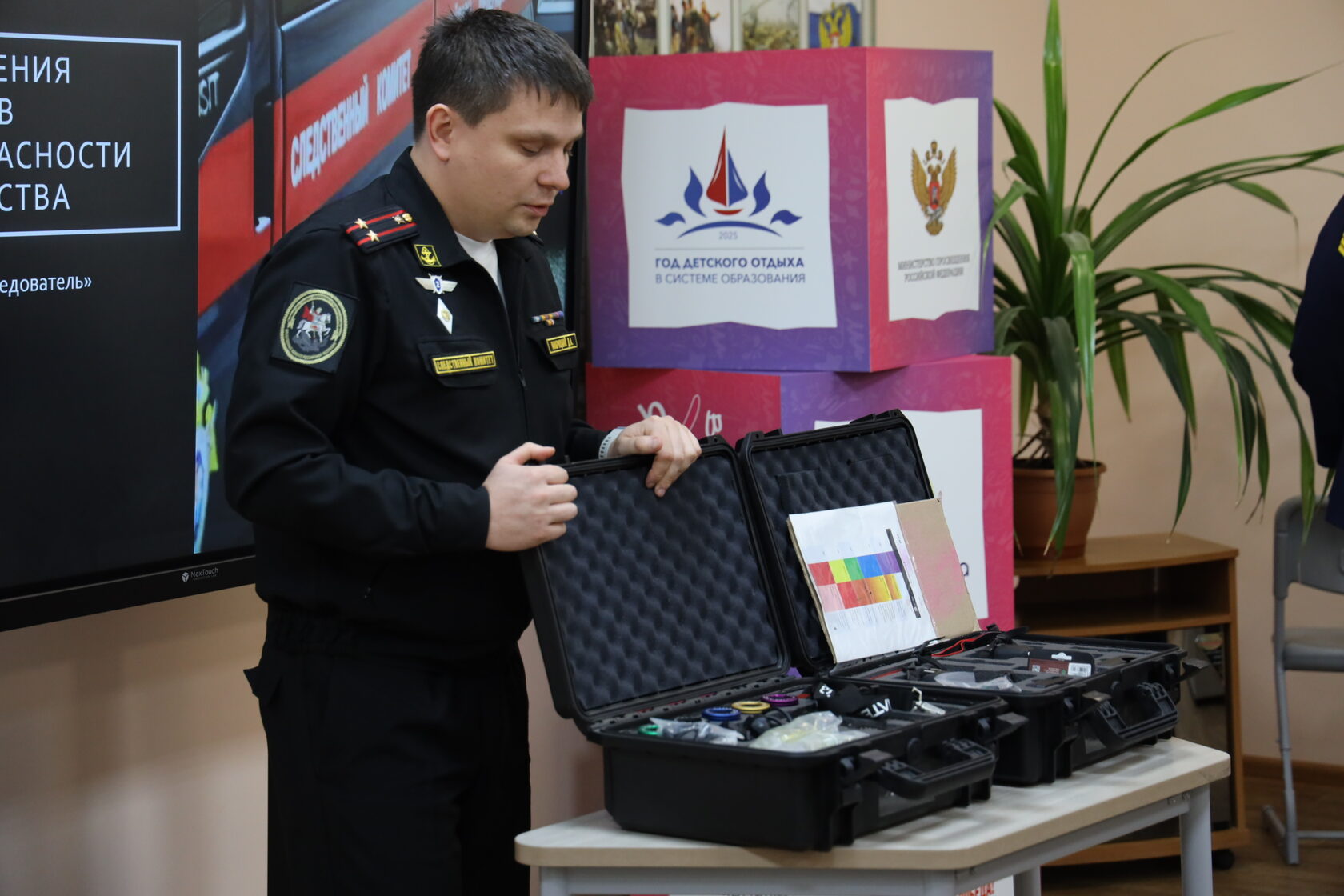 Также следователи рассказали обучающимся о том, как им помогает в работе оборудование из самых разных сфер жизни! Например, эндоскоп из медицины или бетоноскоп из строительства.